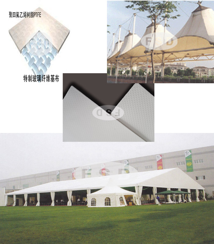 (PTFE)鐵氟龍建筑膜材(5) 導(dǎo)讀 我公司是國內(nèi)較早系統(tǒng)地從事玻纖涂覆氟樹脂制品的研究、開發(fā)、生產(chǎn)的企業(yè)。 近年來,公司引進(jìn)先進(jìn)設(shè)備,從玻纖紗線整理織布氟樹脂涂覆加工后道深